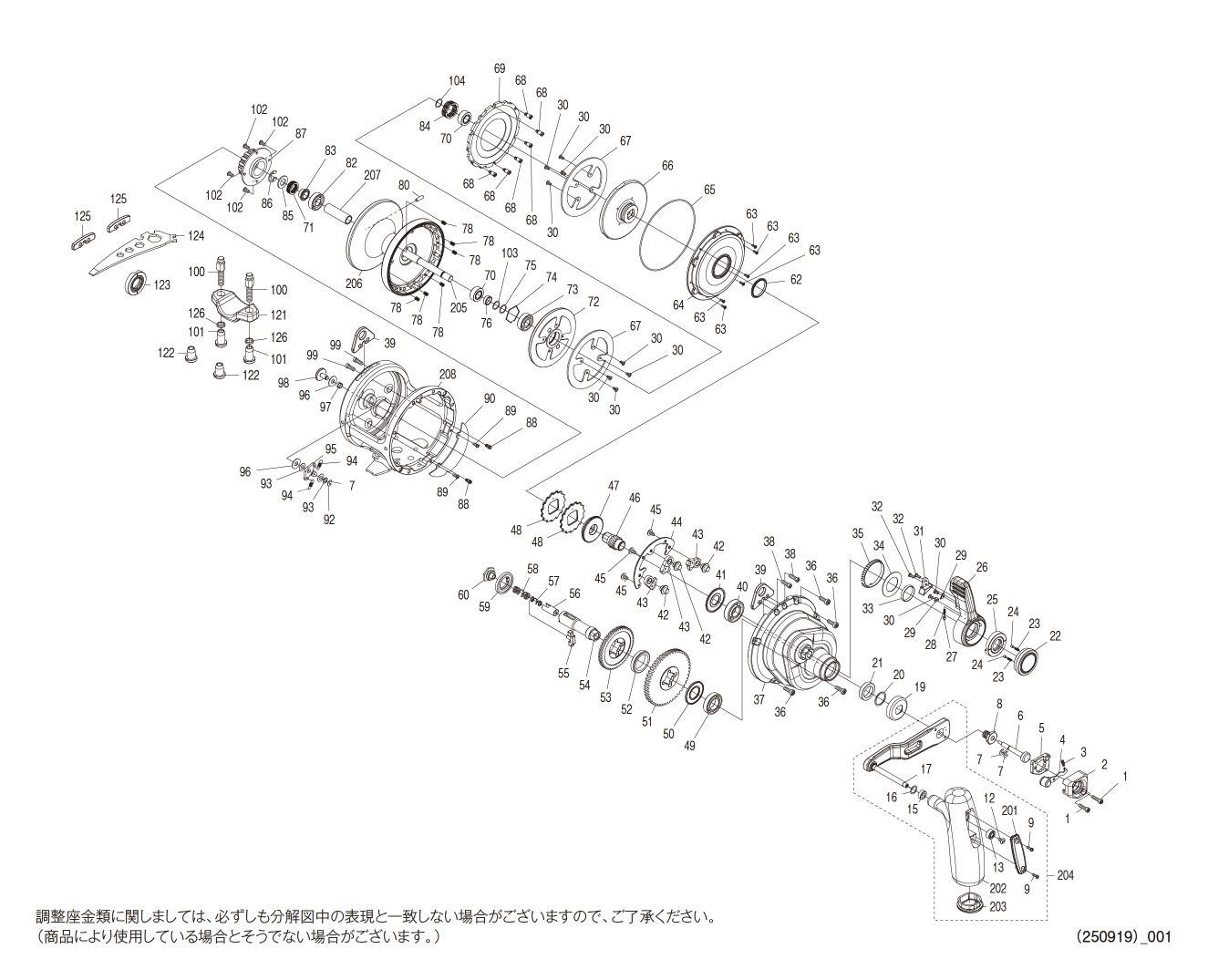 | 0008 | 106XP | ハンドル固定ボルト | 605 | 0033 | 108DP | ドラグレバーブッシュ | 165 | |