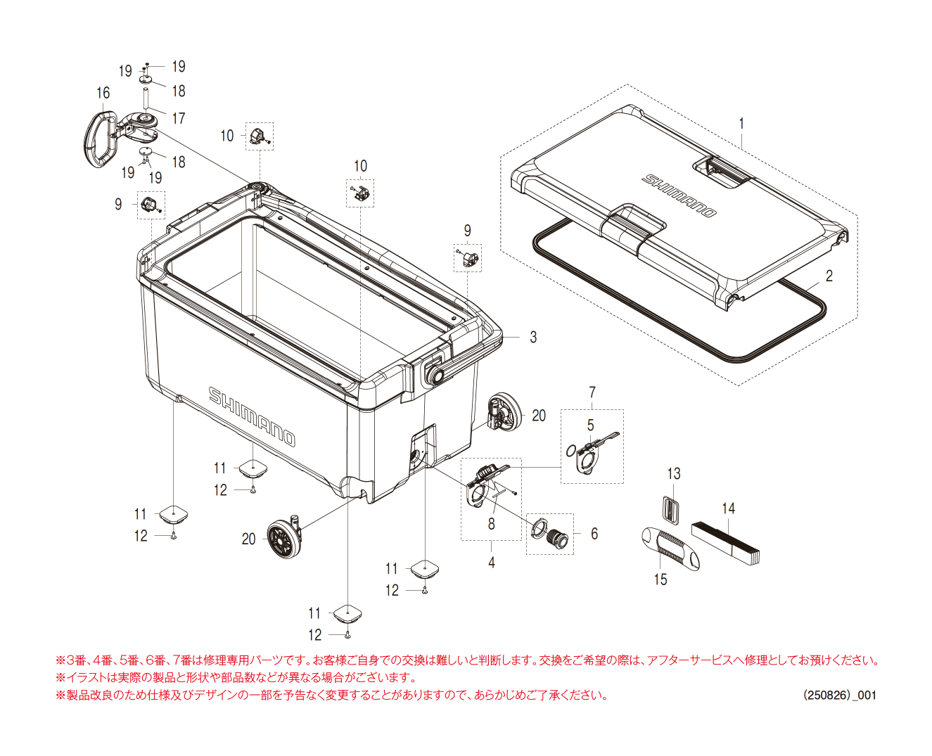 | 0005 | 14AZ9 | 水栓プラグB(ND-420Y ICEWHITE) | 770 | 0015 | 10WFX | フィクセル肩パッド | 825 | |