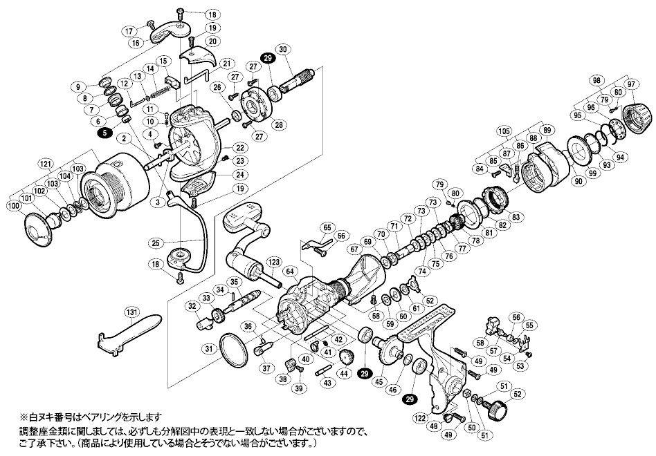 | 0058 | 104QC | 摺動子 | 275 | 0093 | 10NBS | リアドラグツマミ座金 | 110 | |