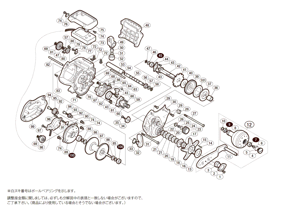| 0049 | 13GE6 | レベルワインド組 | 605 | 0079 | 104T6 | ウォームシャフト受ケ | 110 | |