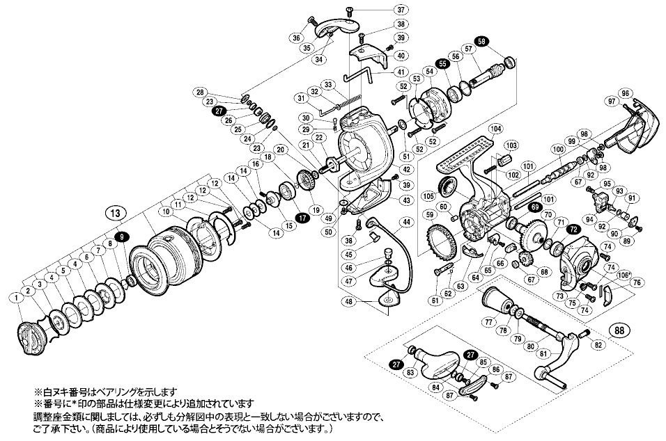 | 0001 | 13BG3 | ドラグノブ組 | 1705 | 0022 | 107VT | 回転枠ナット | 385 | |