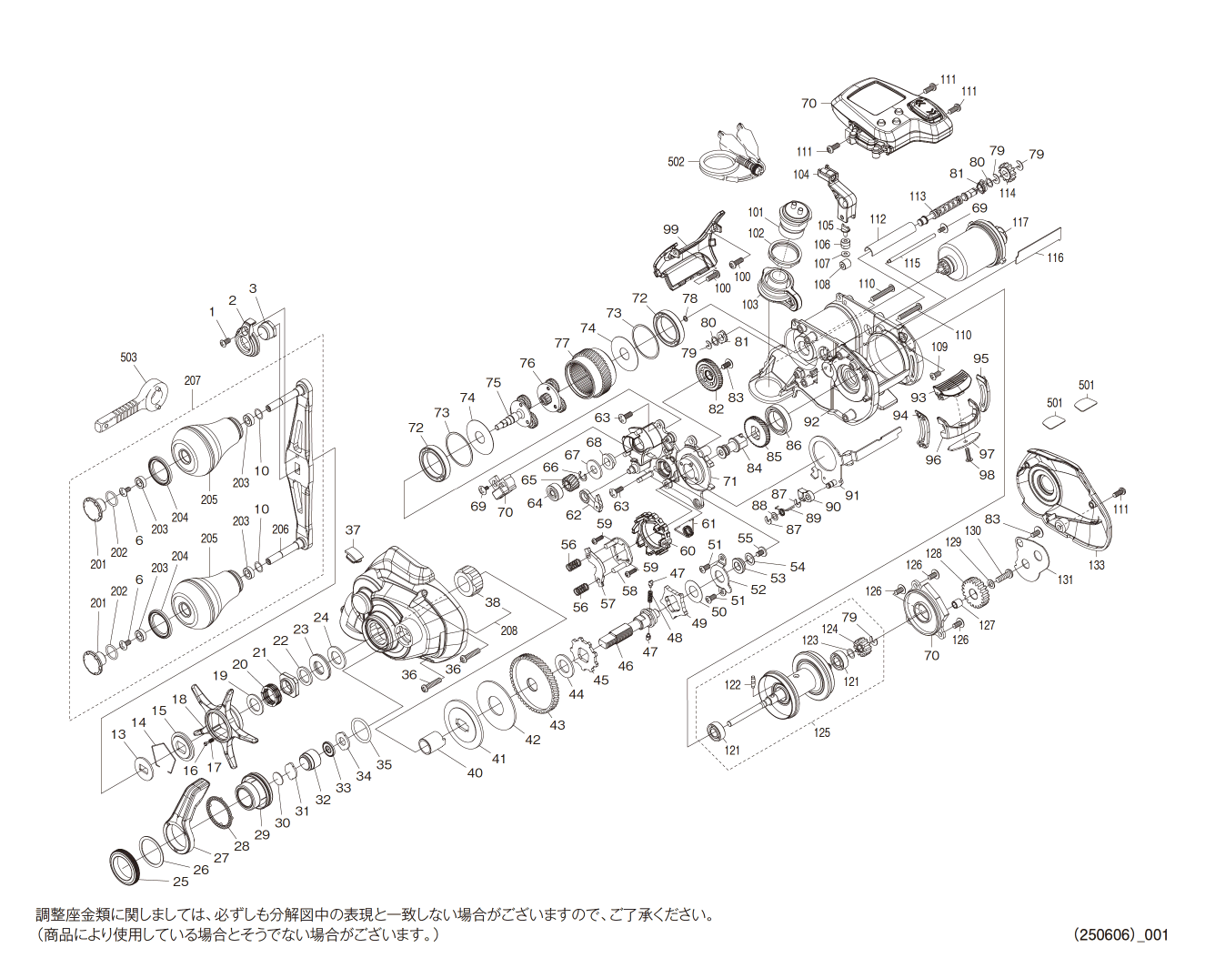 0076 | 100ST | 減速ギア用プレート(A)組 | 4180 | 0125 | 14B5Y | スプール組 | 7260 | |