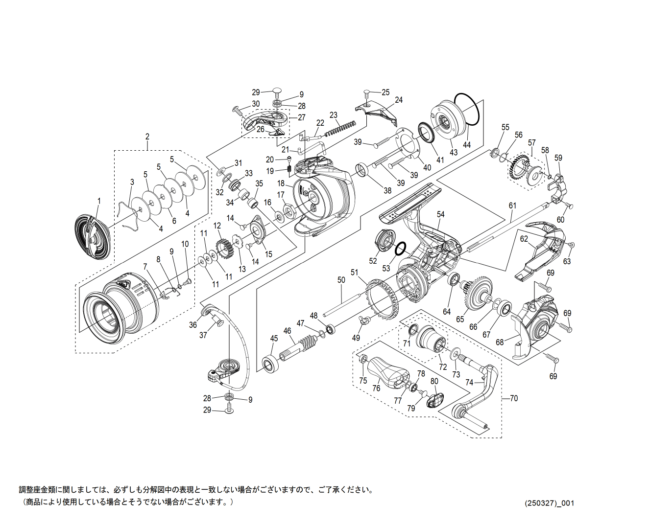 | 0011 | 10BXN | スプール座金セット | 110 | 0032 | 10KFD | アームローラスペーサー | 165 | |