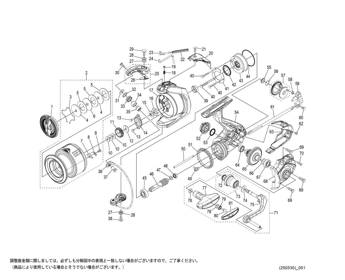 | 0002 | 14A9G | スプール組 | 3850 | 0023 | 105LT | アームバネガイド | 110 | |