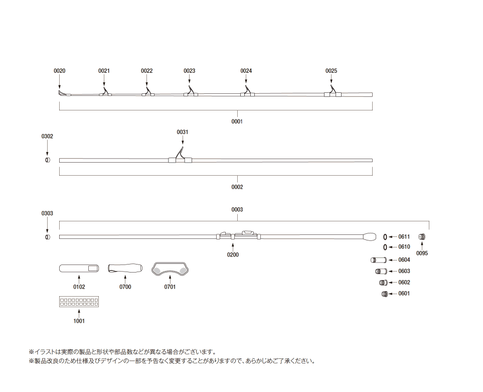 | 0031 | 12WR0 | ガイド W04 21 | 8250 | 0701 | 131N6 | グリップカバーF(リールシート側)(製品に付属しなくなりました) | 2970 | |