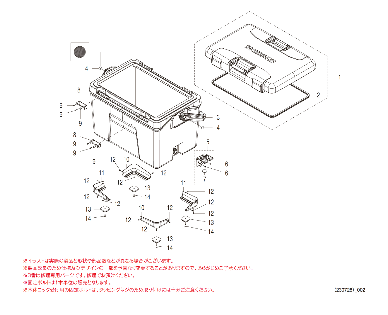 | 0002 | 1457S | 上蓋パッキン(NB-040W) | 2750 | 0009 | 14693 | 固定ボルト サラM3.5X12 SILVER | 220 | |