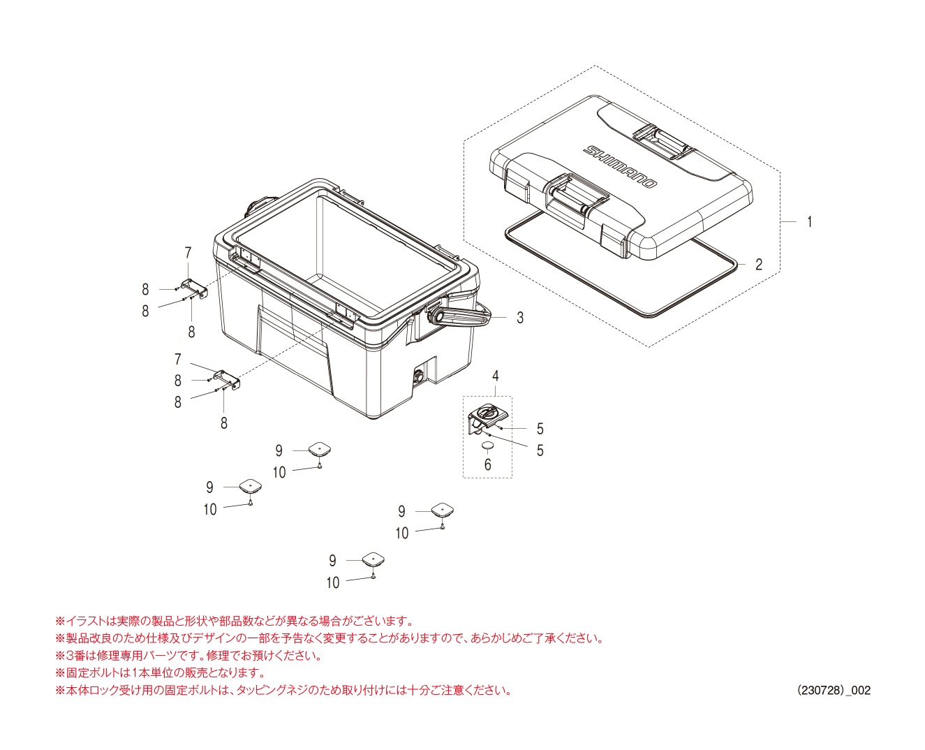 | 0002 | 1457S | 上蓋パッキン(NB-040W) | 2750 | 0007 | 1457X | 本体ロック受け LIGHT用(NBー440W) | 1650 | |